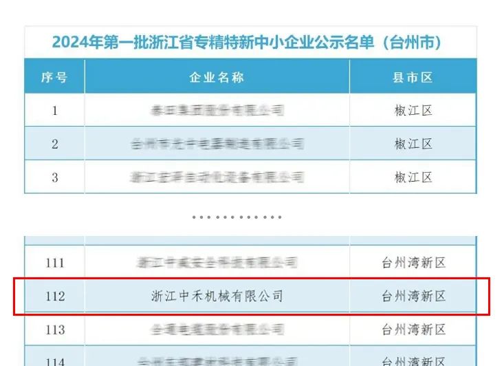 喜報 | 浙江中禾機械有限公司獲浙江省2024年度“專精特新”中小企業(yè)稱號